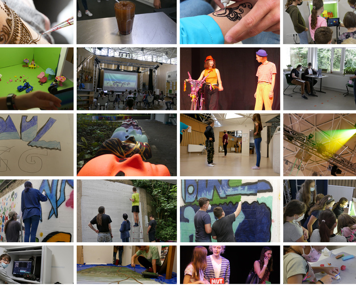 Zirkus, Comedy, Geschichten schreiben, Arbeit mit Medien, Gestalten, Sport.