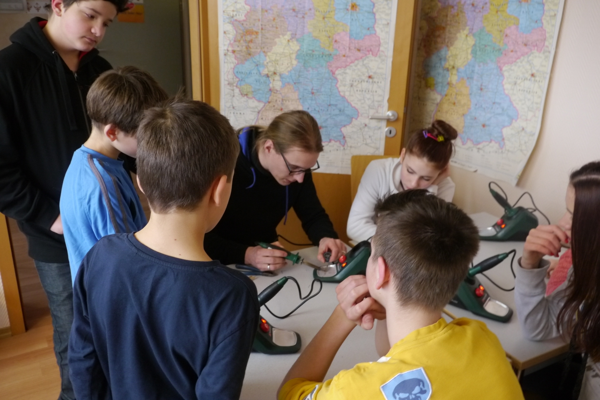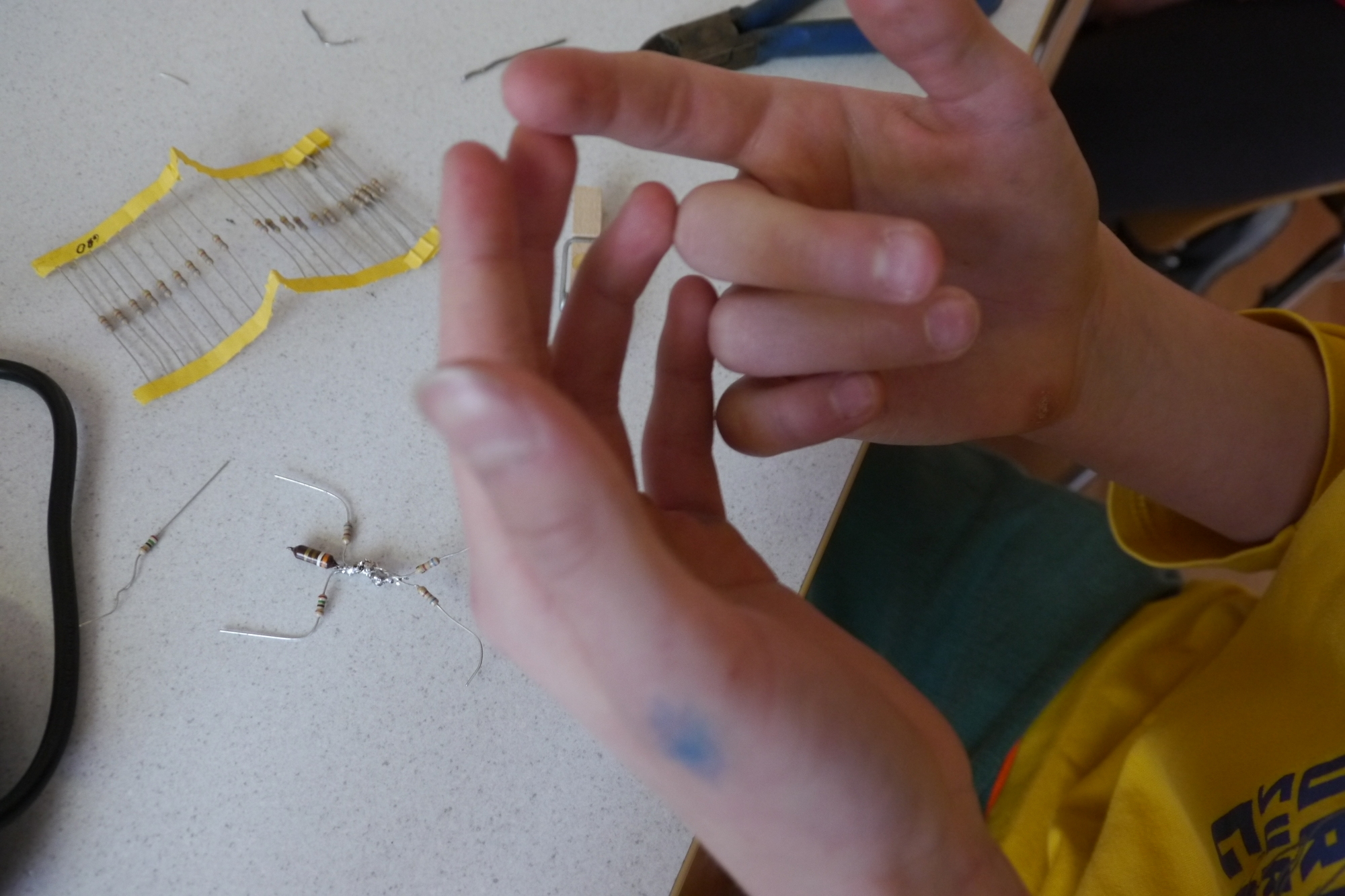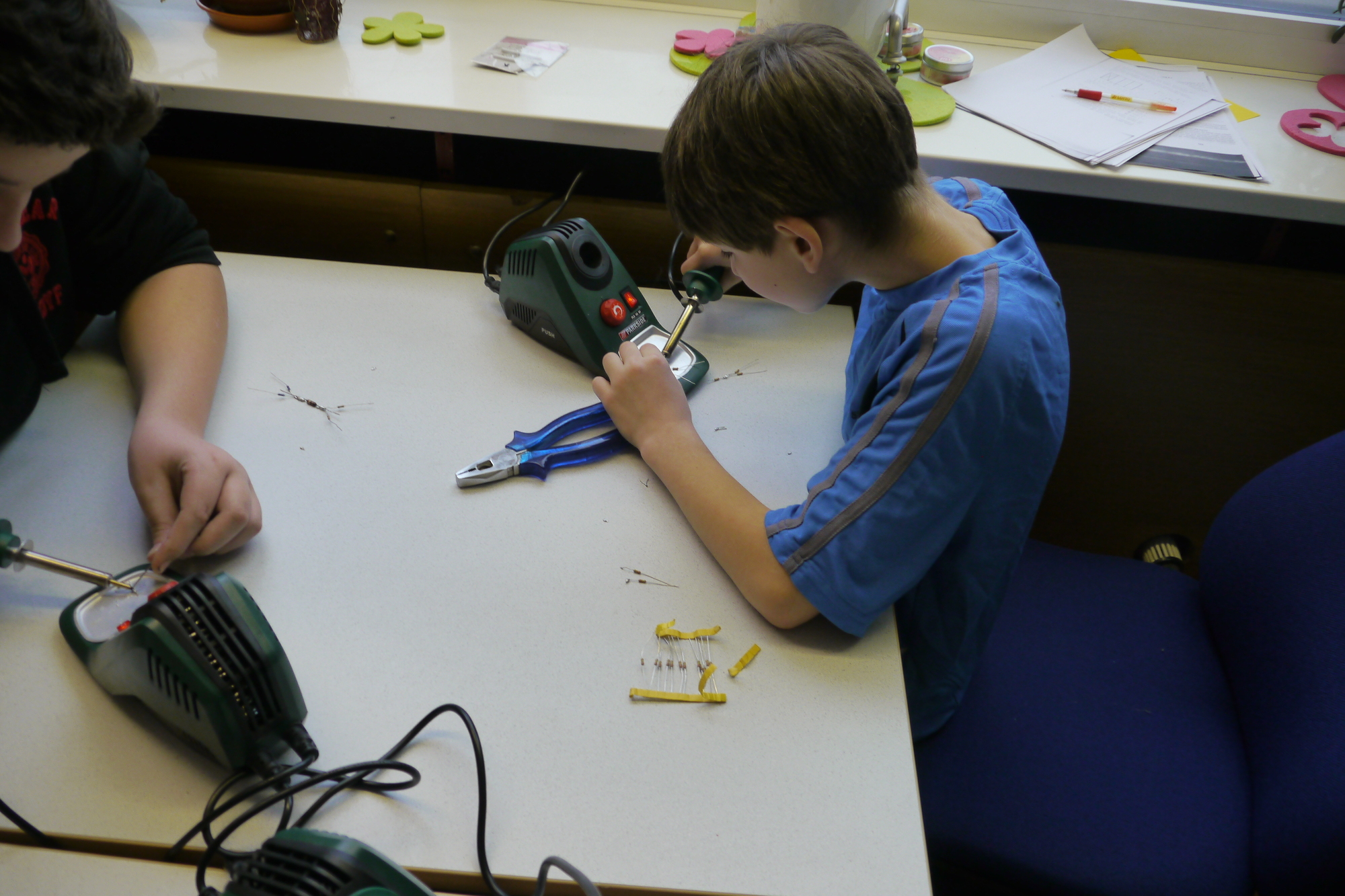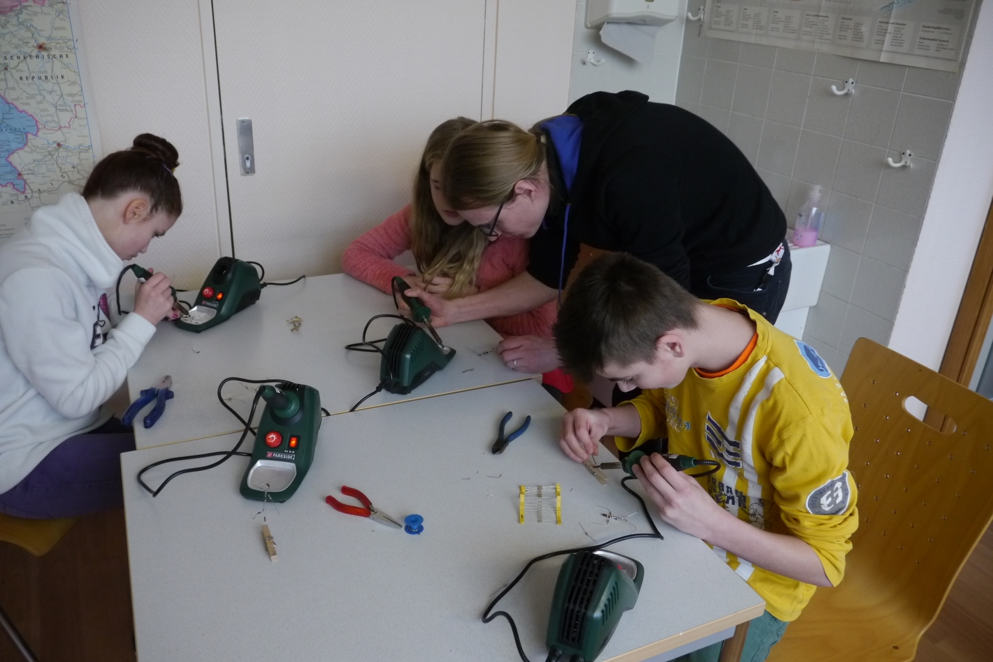 Zum Schluß konnten die neuen Lötstationen getestet werden. Kleine Lötmännchen entstanden und die Jugendlichen konnten sich kreativ ausprobieren und die eigene Ausdauer in Sachen Feinmotorik testen.