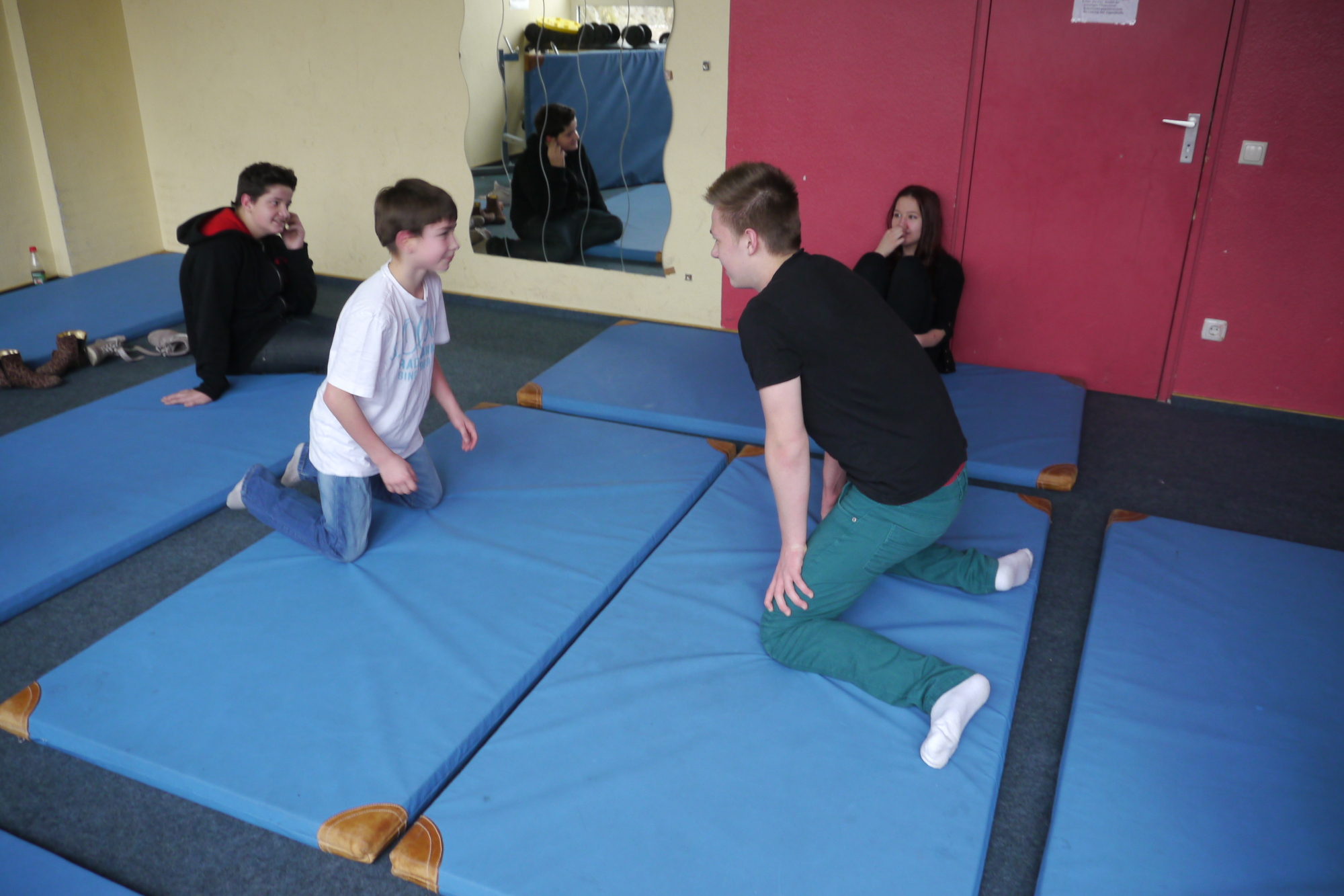 Danach folgte ein Angebot von Felix- Ringen und Raufen. Hier konnten die eigenen Kräfte geteste werden indem man bei verschiedenen Übungen gegen andere Jugendliche angetreten ist und sich richtig auspowern konnte.