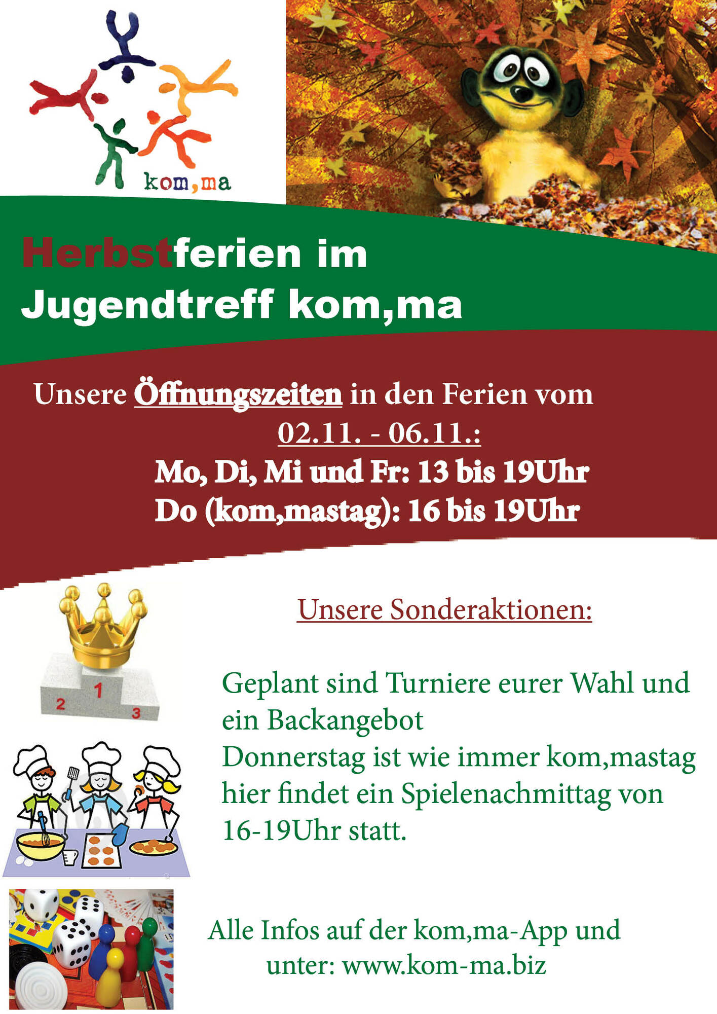 Unsere Ferienöfnungszeiten (2.11.-6.1..): Mo, Di, Mi und Fr: 13.00 - 19.00 Uhr