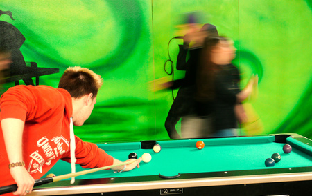 Im Foyer findet ihr einen Billard- und Airhockeytisch, sowie ein Regal mit verschiedenen Zeitschriften.